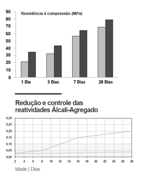4. Reduz a quantidade de poros da matriz do cimento hidratado, reforçando a resistência da zona interfacial entre a pasta de cimento e os agregados.